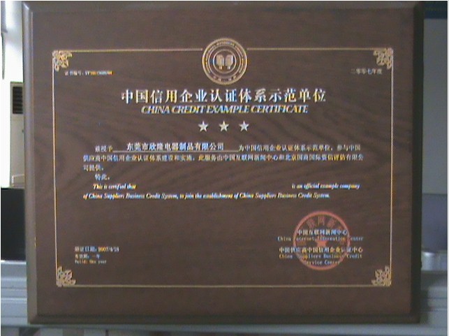 中國信用企業認證體系示范單位